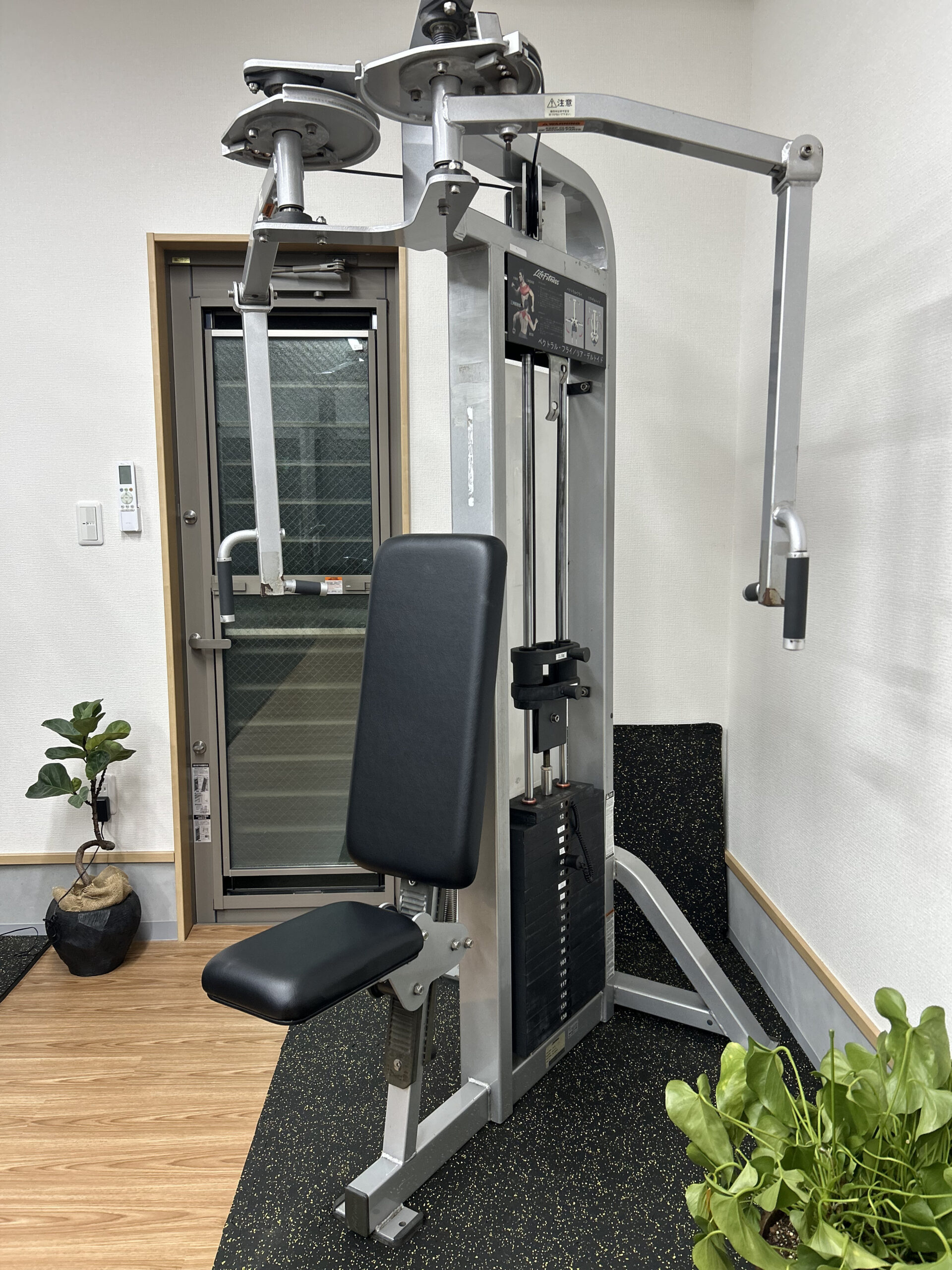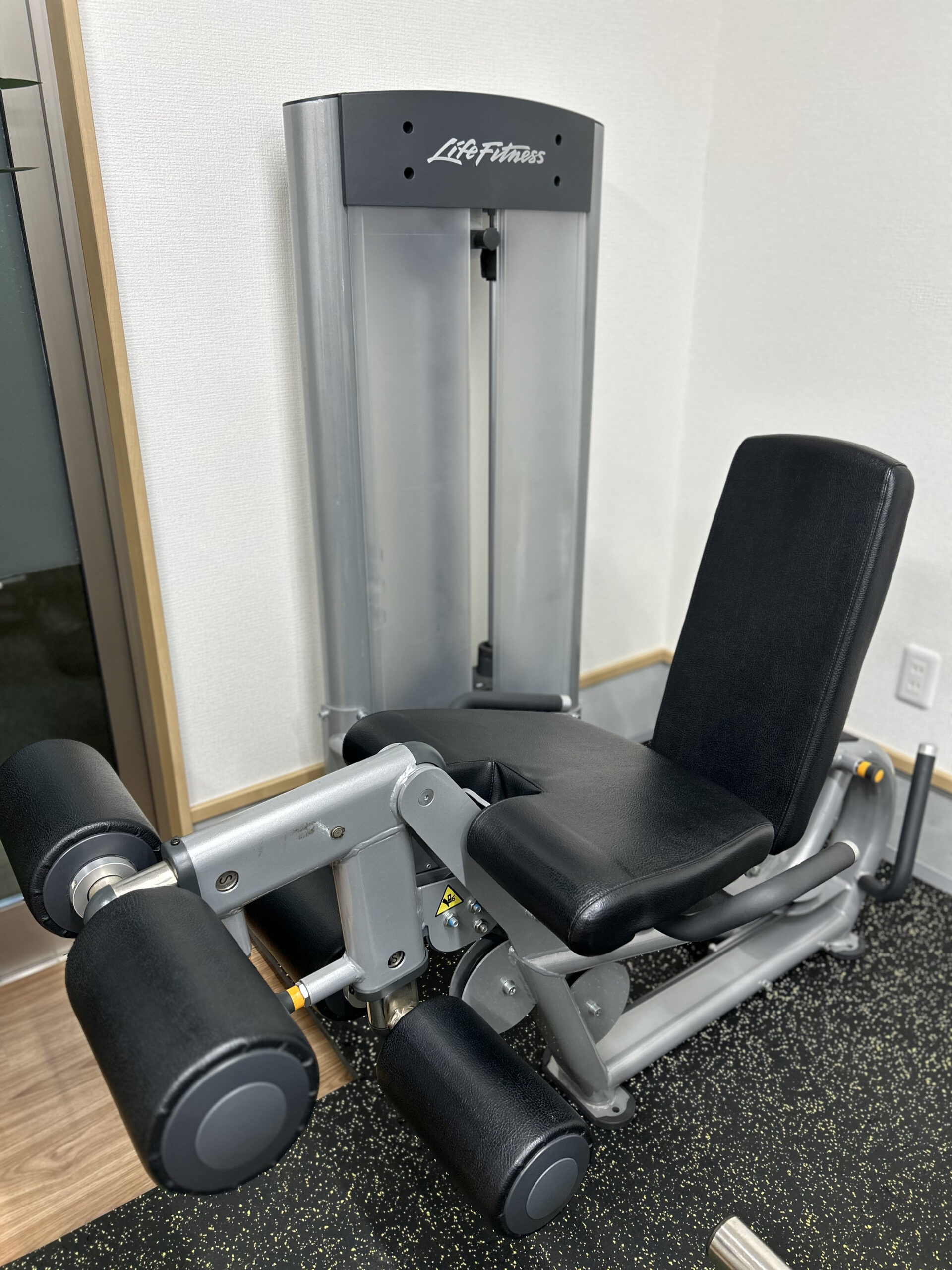 デスクワーク中心で骨盤が後傾気味で、もも裏がガチガチなお客様がかなり多い印象だったので、ももの裏に効率よく刺激を感じていただくためにレッグカール(エクステンション)マシンを導入しました。こちらも座席の設定を変えることで前ももも鍛えることができるスグレモノマシンです。実際に自分がトレーニングで使ってみて、体感がよいかなり気に入ってたマシンだったので導入を決めました。これでスクワットができないお客様にも前ももやももの裏に刺激を感じてもらえます。嬉しいなぁ〜。